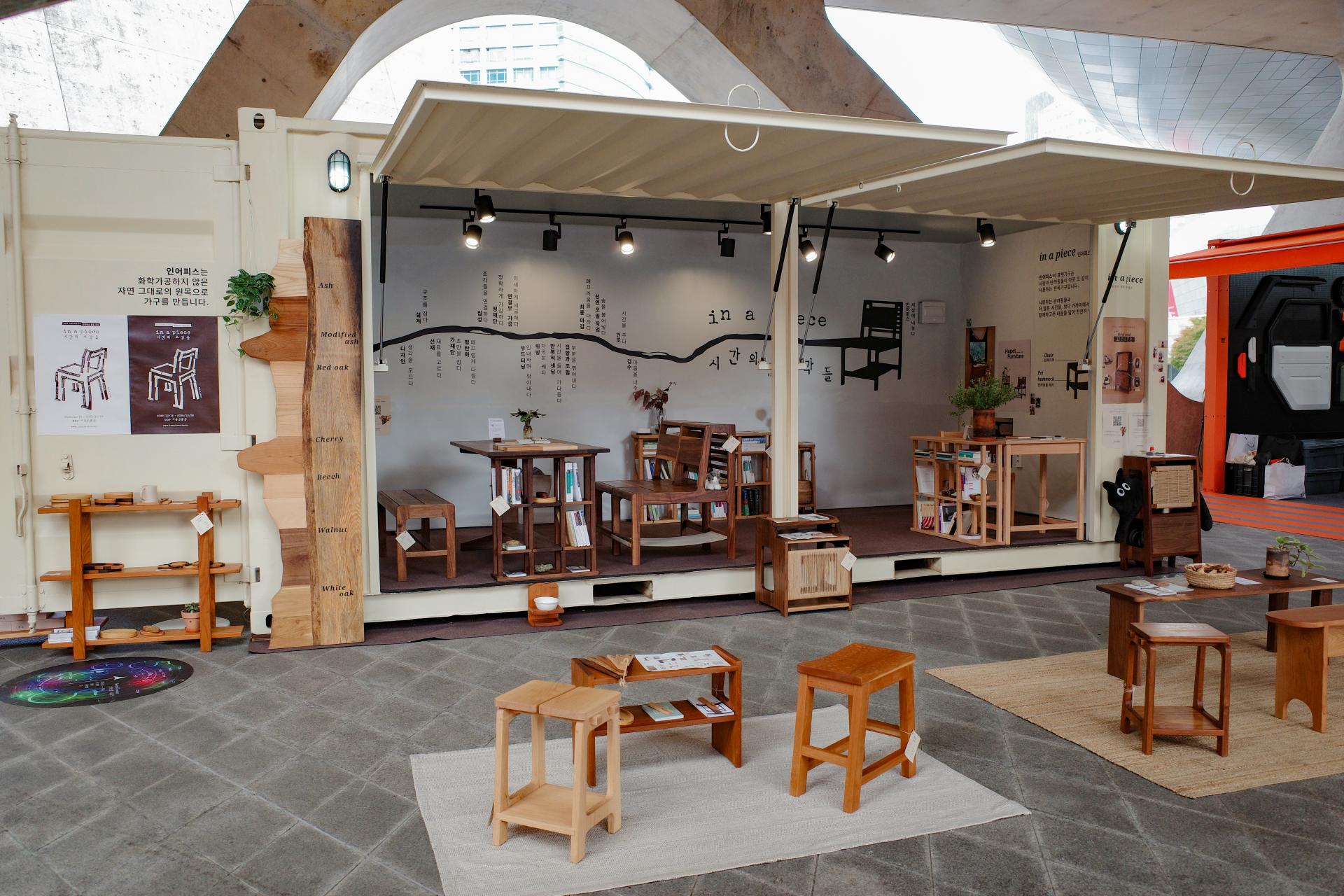 인어피스는 DDP 어울림광장에 단독부스를 차리고 관람객분들을 맞았습니다. 외국인 고객님들, 디자인업계 종사분들, 디자인을 사랑하시는 분들, 여러 분야의 창작자님들을 고루 만날 수 있는 행사였어요. 12일 간의 긴 행사인데다 야외 행사라서 체력적으로 힘든 순간도 있었는데요. 가구가 너무 아름답다, 며 해 주신 칭찬에 기운이 나더라고요.