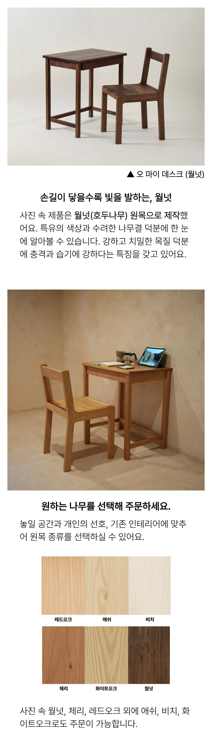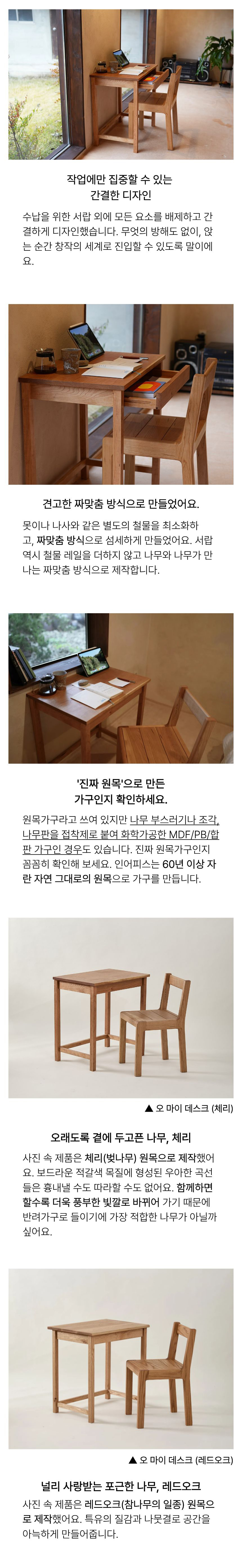 보유한 의자나 기존 인테리어에 맞춰 선호하시는 원목 종류로 선택 또한 가능합니다.