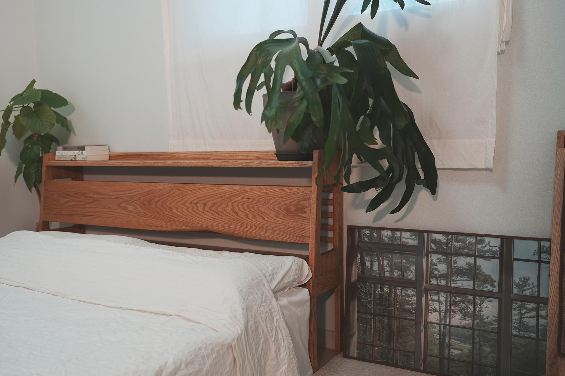 나무와 나무가 만나는 짜맞춤방식으로 섬세하게 결합했습니다(철물 최소화). 사진 속 제품은 퀸사이즈 매트리스에 맞추어 디자인한 제품입니다. 평생을 사용할 가구이므로 구매 결정 전, 편하신 방법(유선, DM, 이메일, 방문)으로 충분히 상담하시길 권장드려요.