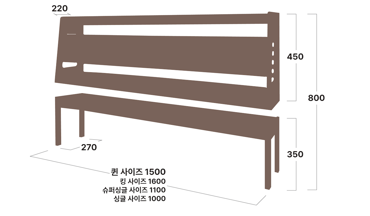 - [헤드부] W 1500 x D 220 ~ 270 x H 450 (mm)
