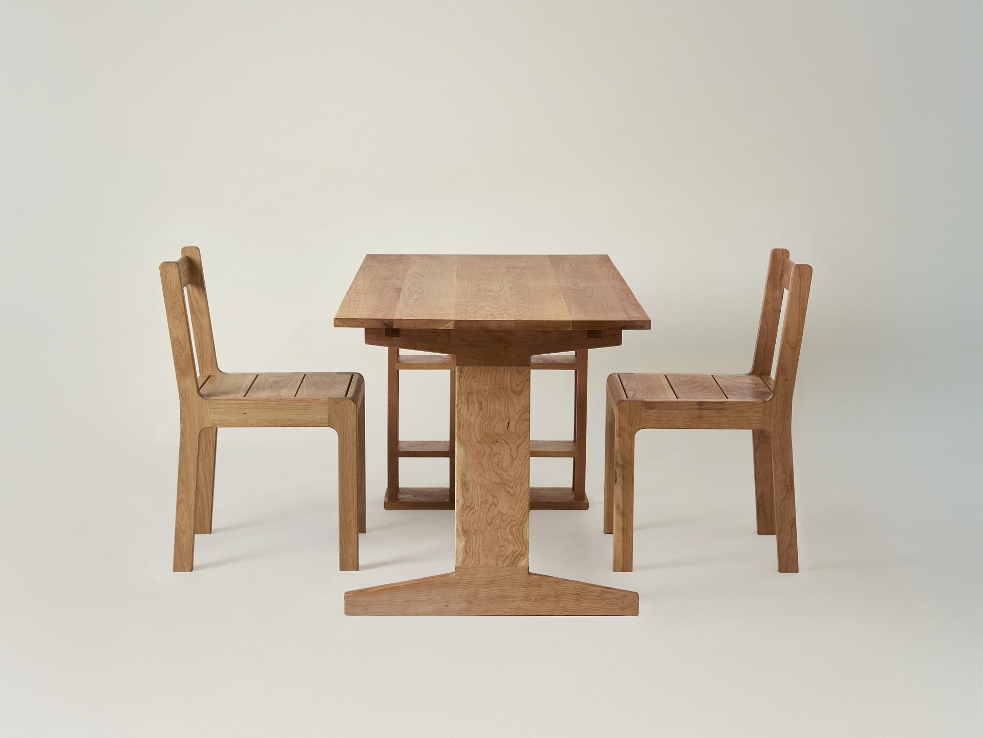 의자를 추가하여 구매하셔도 좋지만 테이블만 구매하셔도 충분히 멋진 공간이 될 거예요. 간결하고 안정적인 디자인으로 제작했기 때문에 기존에 사용하시던 어떤 의자들과 배치해도 잘 어울리실 거예요. 의자가 꼭 같은 나무종류가 아니더라도 괜찮습니다. 아래 사진은 월넛 테이블에 월넛, 레드오크, 비치, 체리 의자와 함께 배치한 모습입니다.