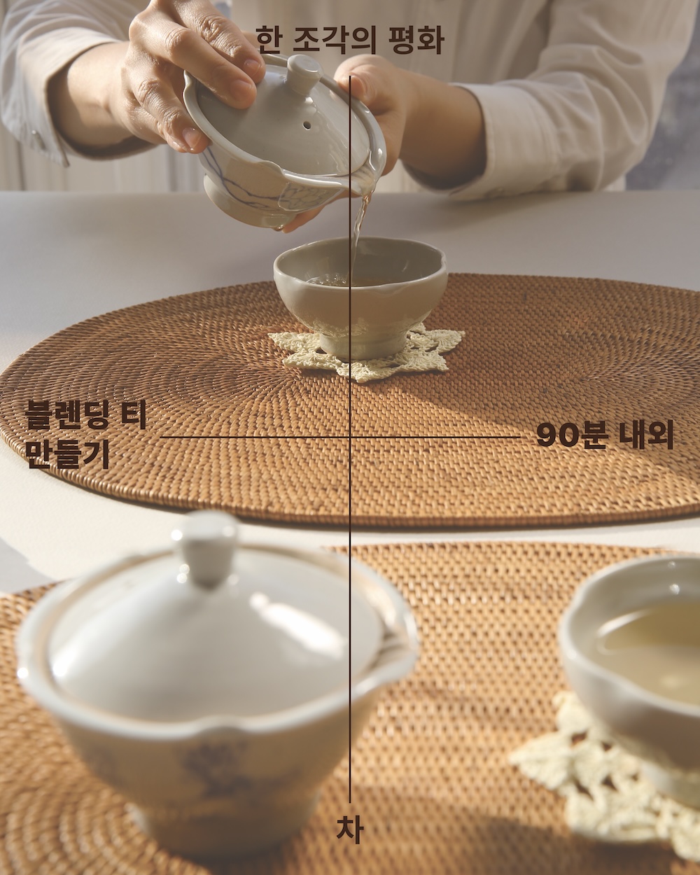 한국의 로컬 곳곳에서 자라난 찻잎, 꽃잎, 뿌리, 과실 등으로 블렌딩 티를 만드는 프로그램입니다(90분 내외 소요). 나만의 블렌딩 티를 만들고 시음하실 수 있어요. 각기 다른 맛, 향, 효능을 가진 다양한 우리 차 중 나에게 어울리는 차를 발견하고 만드는 재미, 차가 우러나길 기다리는 동안 내 안의 나를 마주하는 여유, 오감을 깨우는 찻물을 음미하며 몸속에 전해지는 생기를 경험해 보시길요.