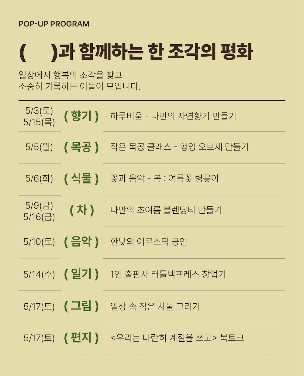 [한 조각의 평화] 팝업스토어 프로그램 예약SOLDOUT