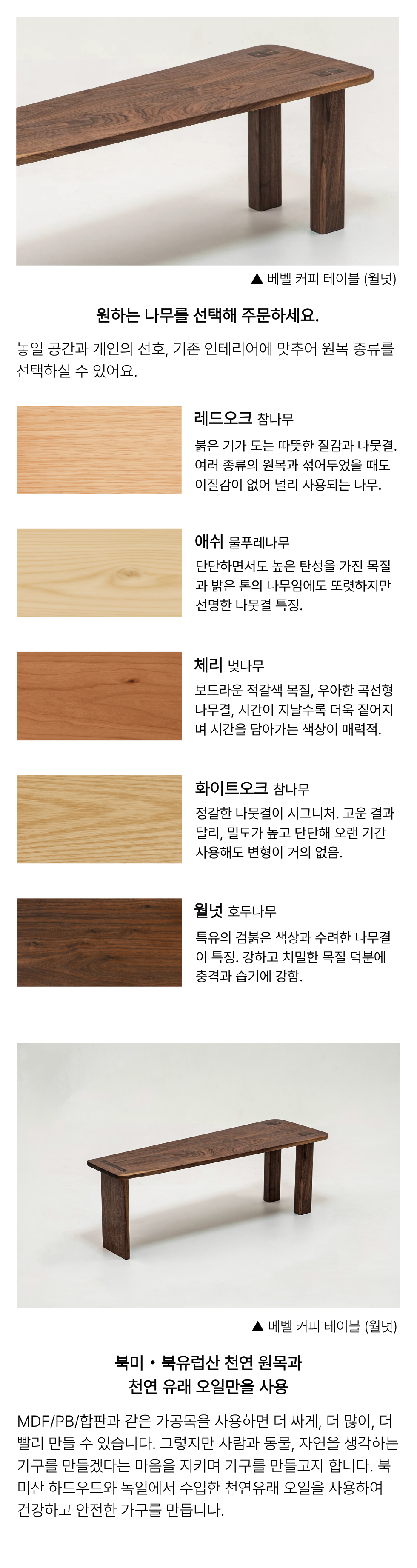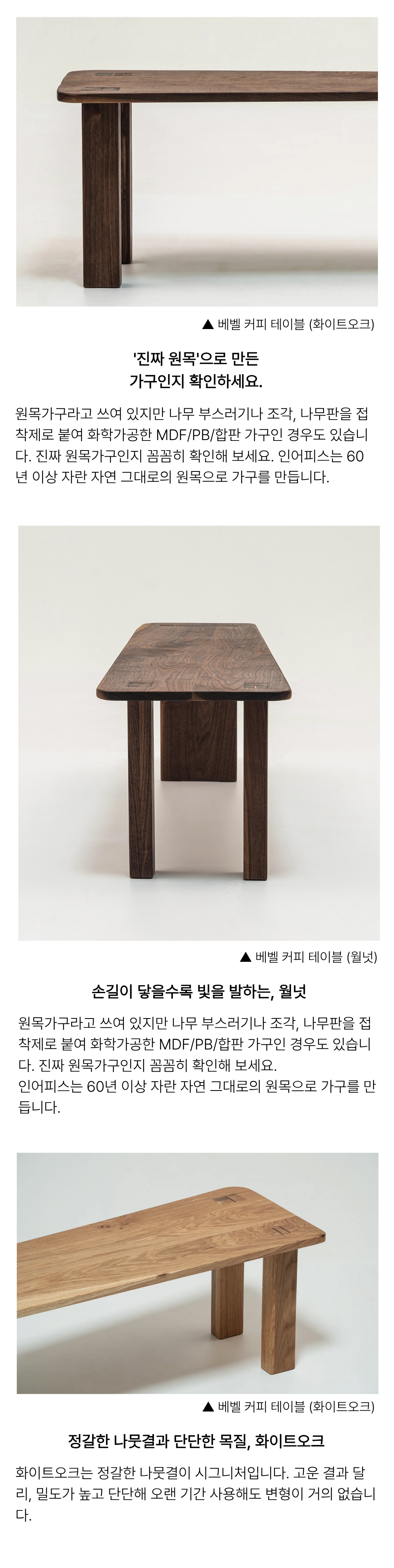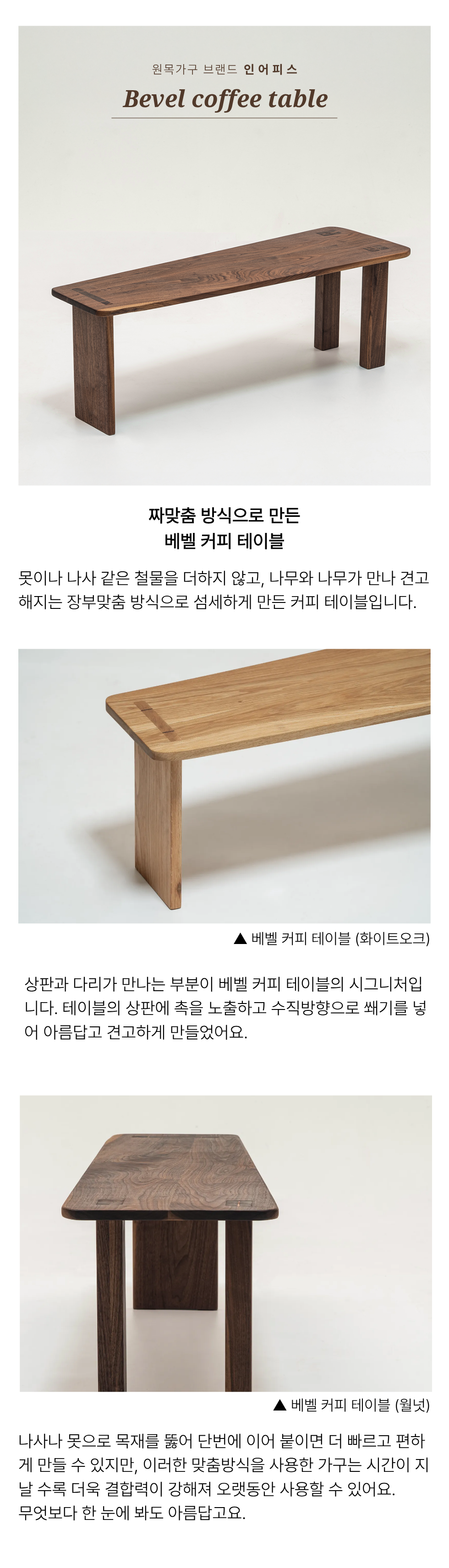 테이블의 상판과 다리 결합시 못이나 나사와 같은 별도의 철물을 더하지 않고, 나무와 나무가 만나는 짜맞춤 방식으로 섬세하게 만든 커피테이블입니다.